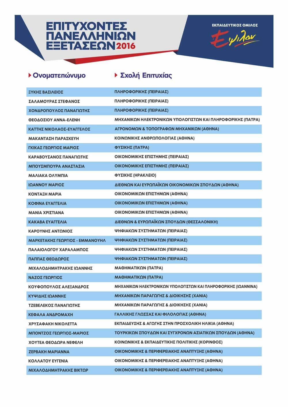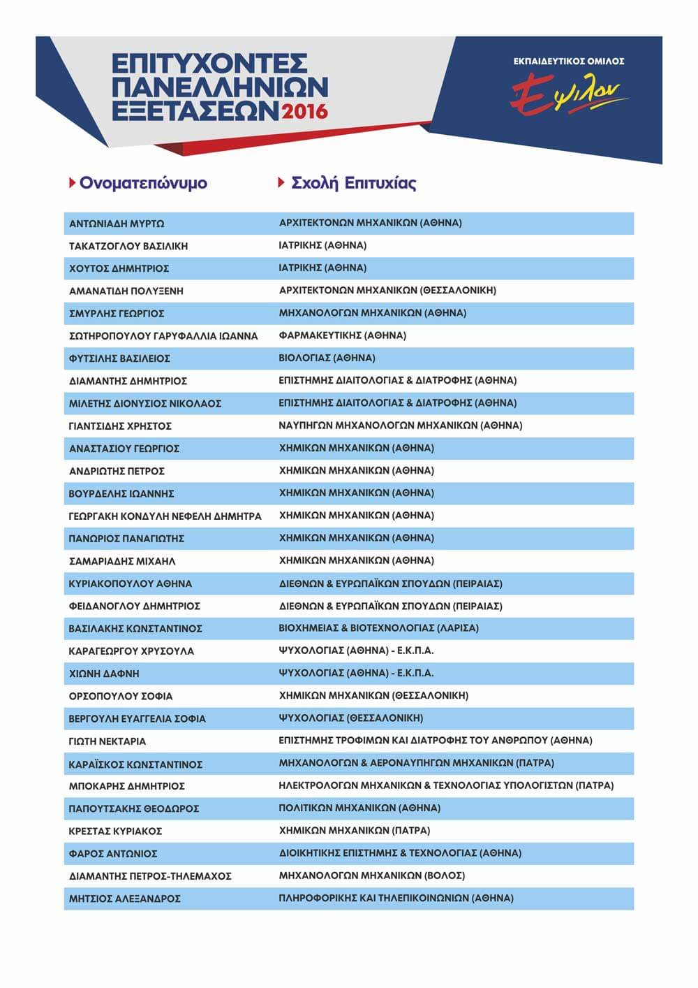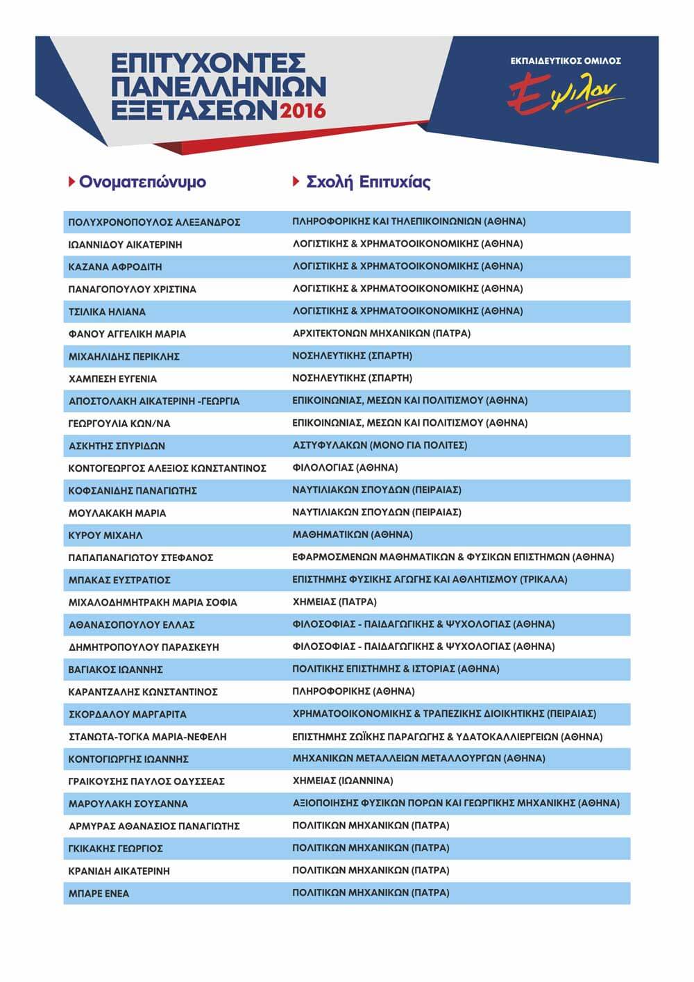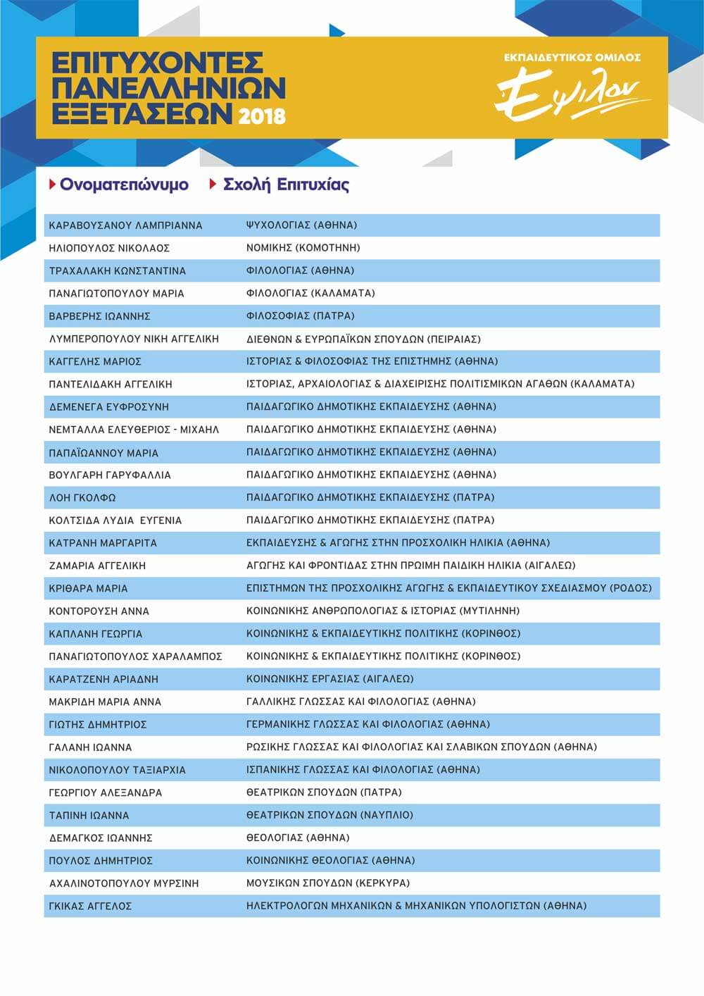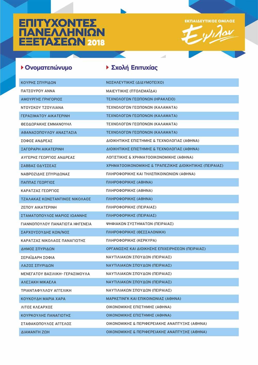 ΠΙΝΑΚΑΣ ΕΠΙΤΥΧΟΝΤΩΝ ΑΝΑ ΕΤΟΣ