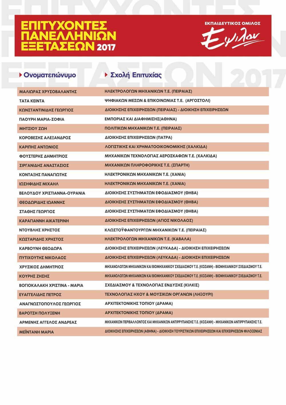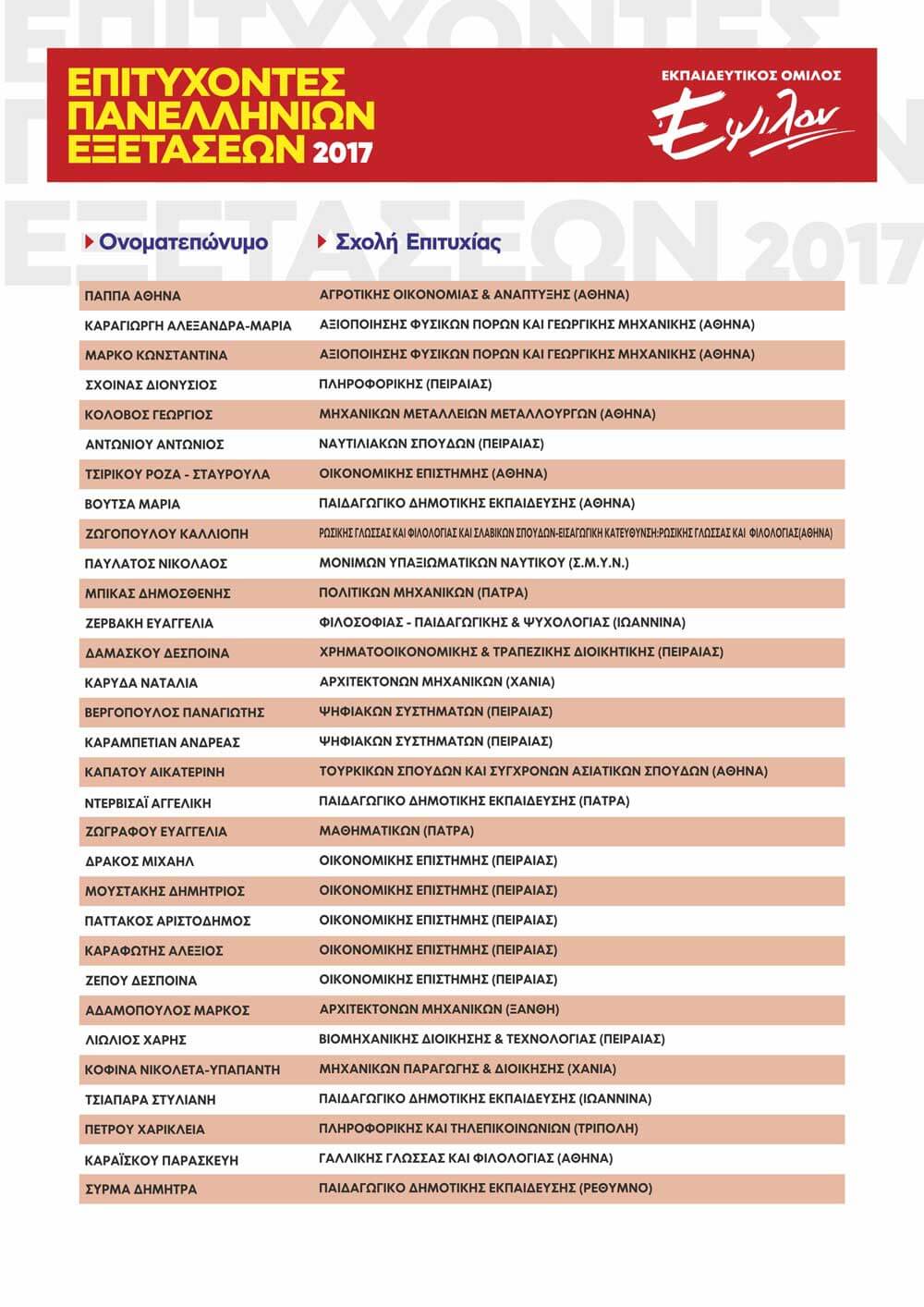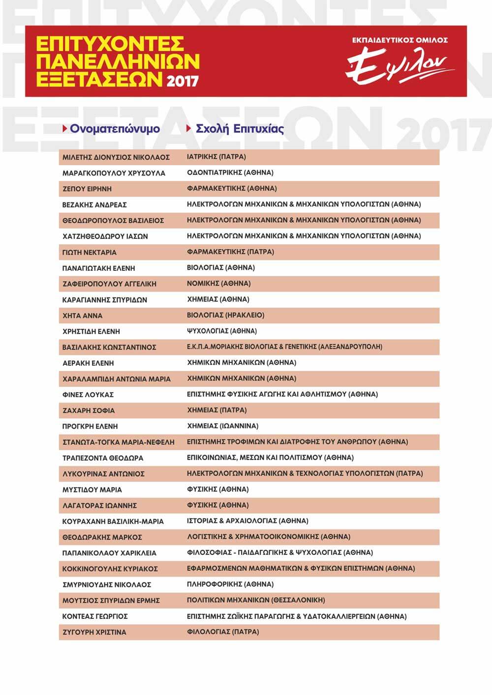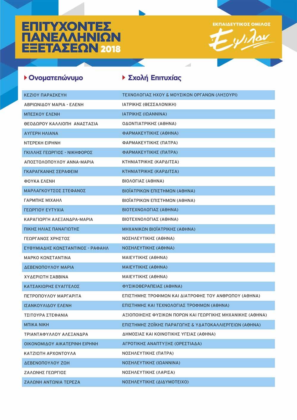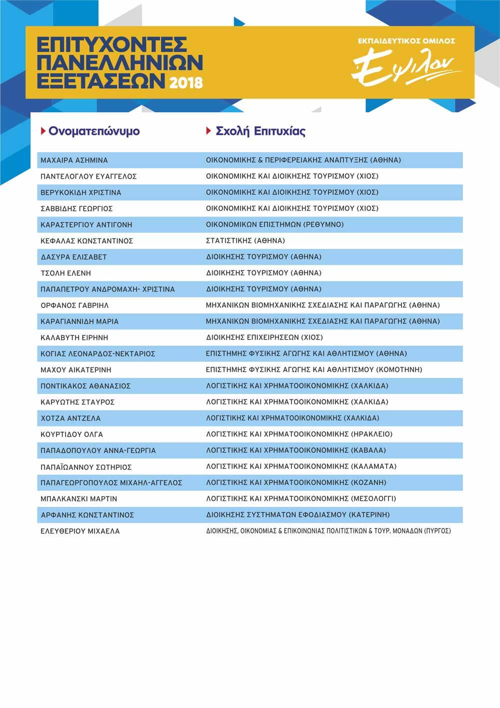 ΠΙΝΑΚΑΣ ΕΠΙΤΥΧΟΝΤΩΝ ΑΝΑ ΕΤΟΣ