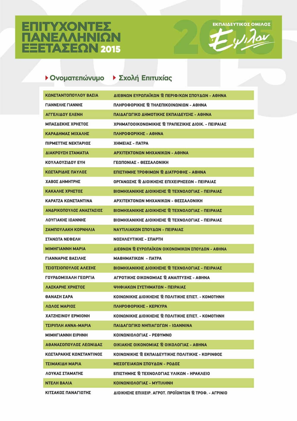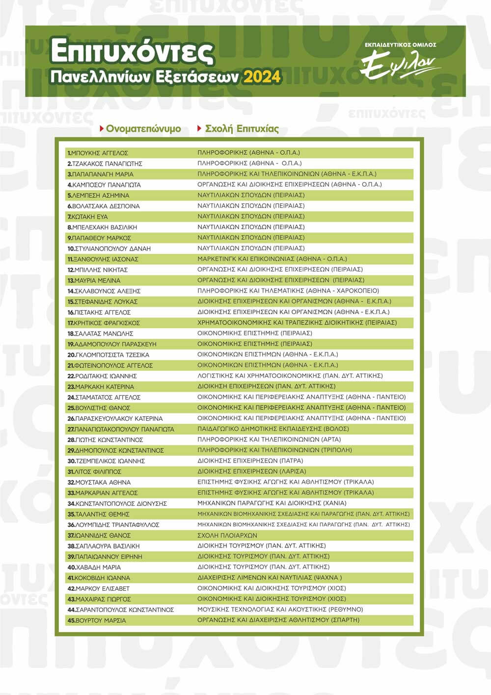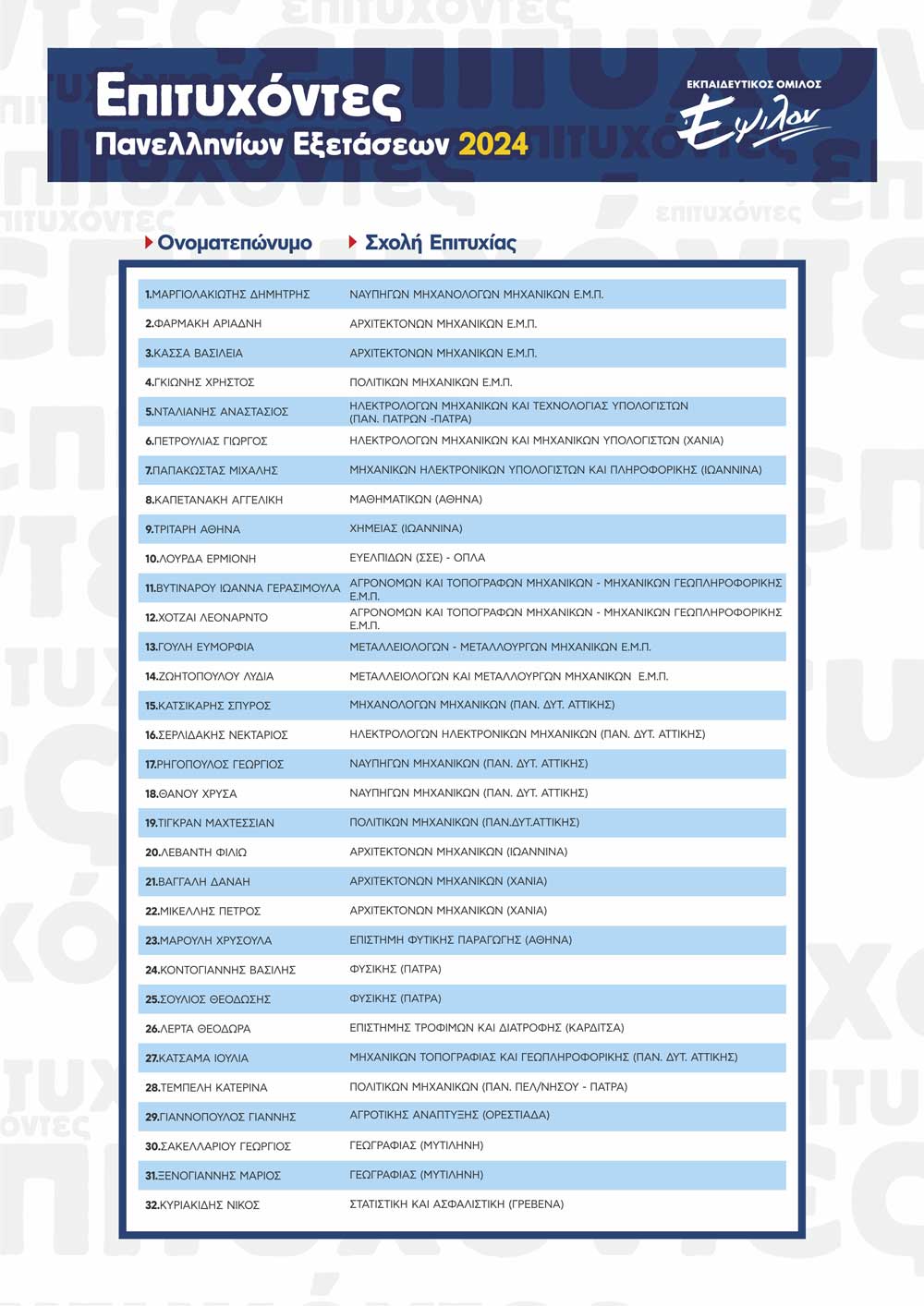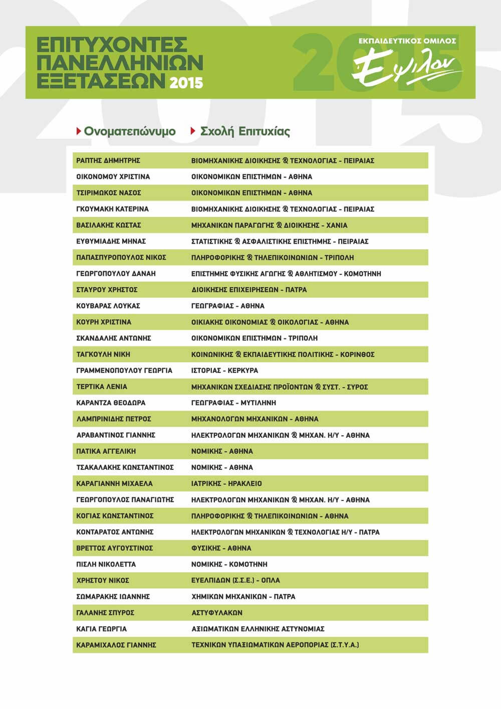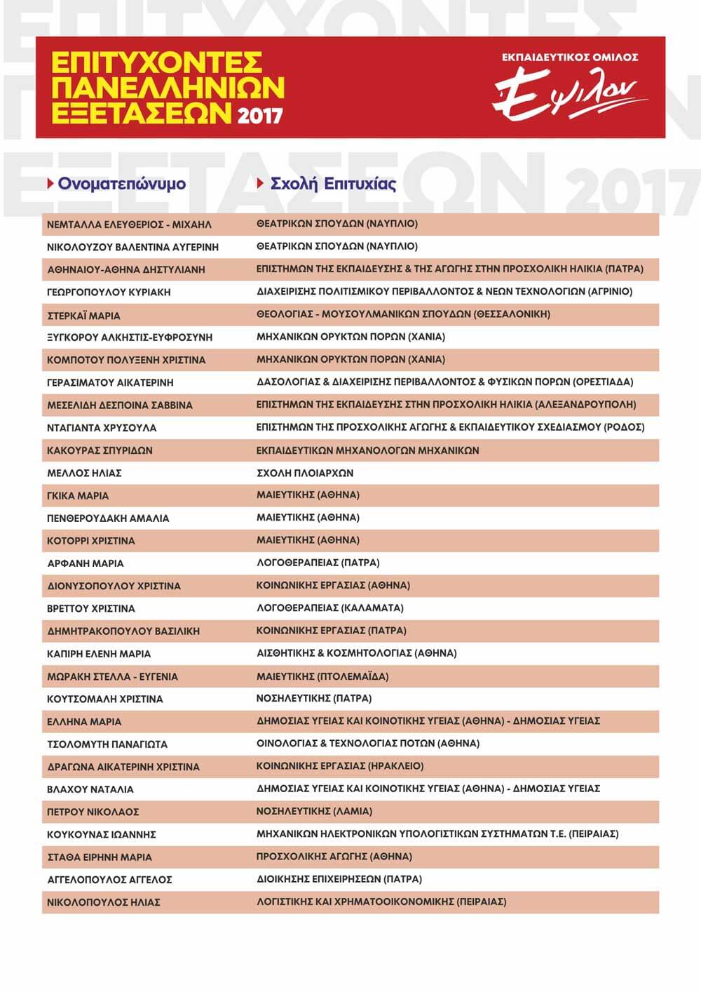 ΠΙΝΑΚΑΣ ΕΠΙΤΥΧΟΝΤΩΝ ΑΝΑ ΕΤΟΣ