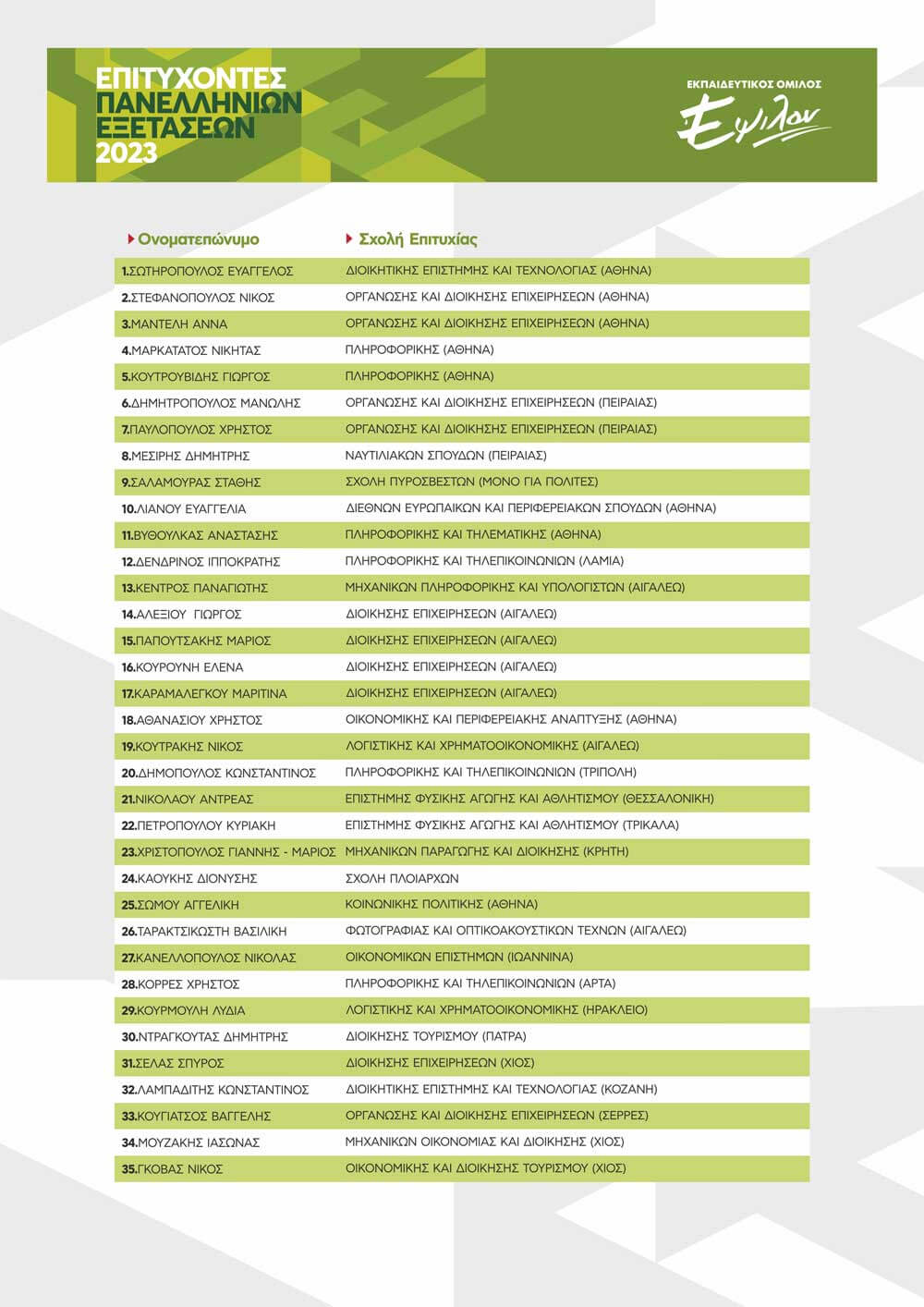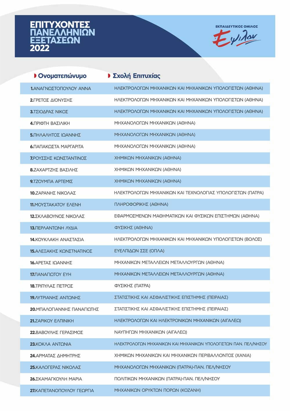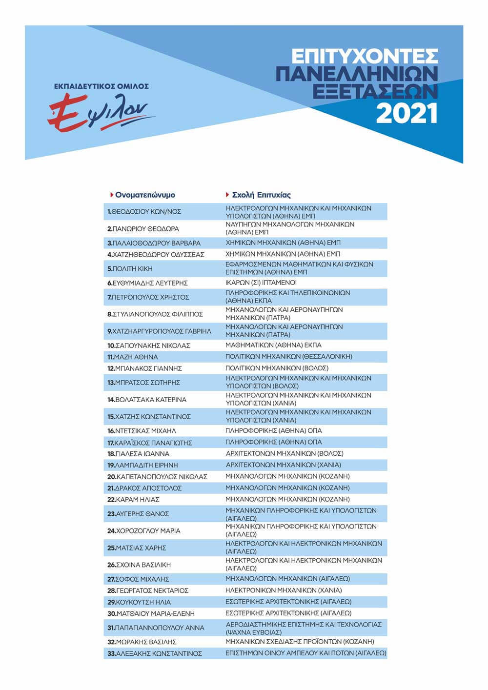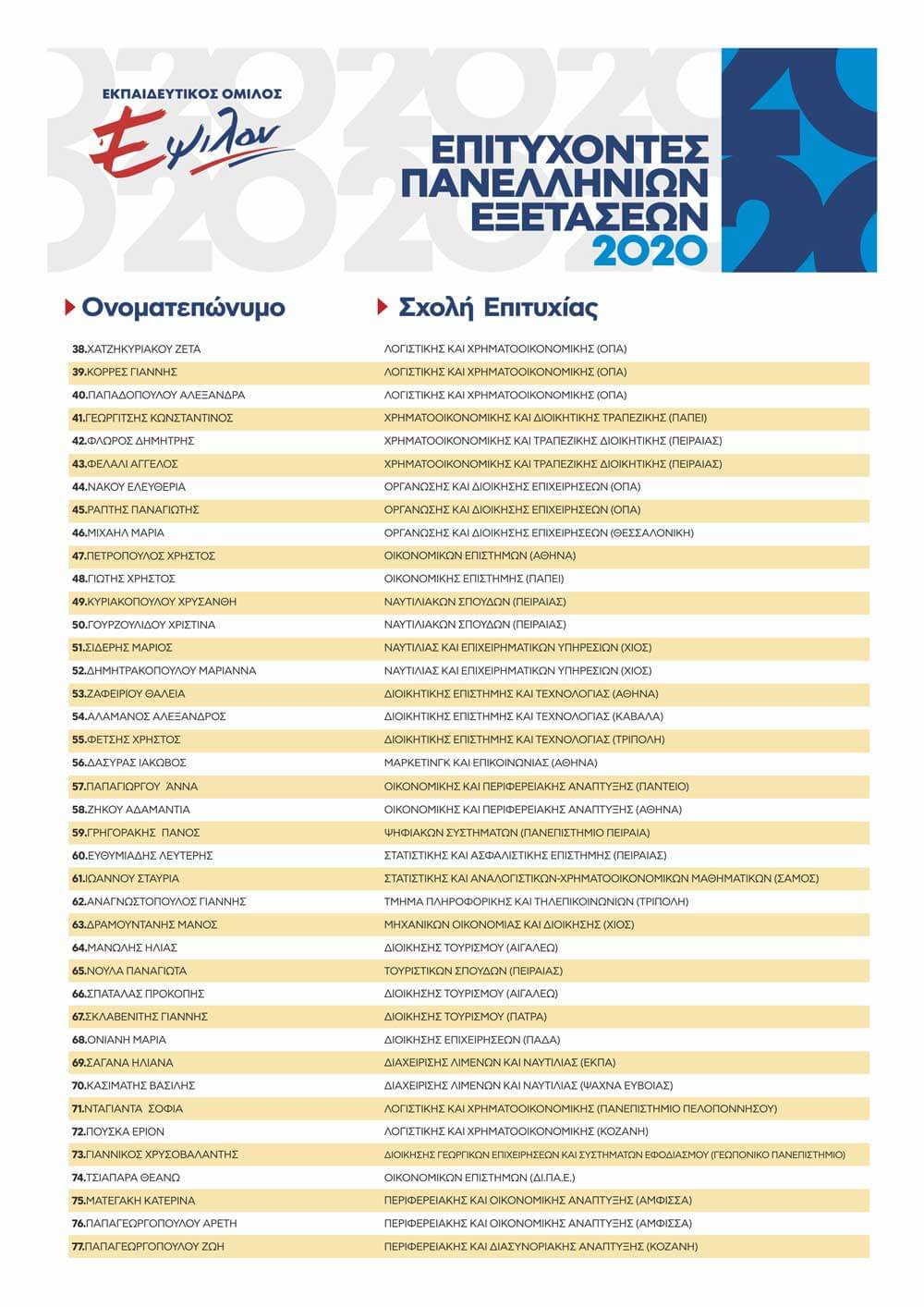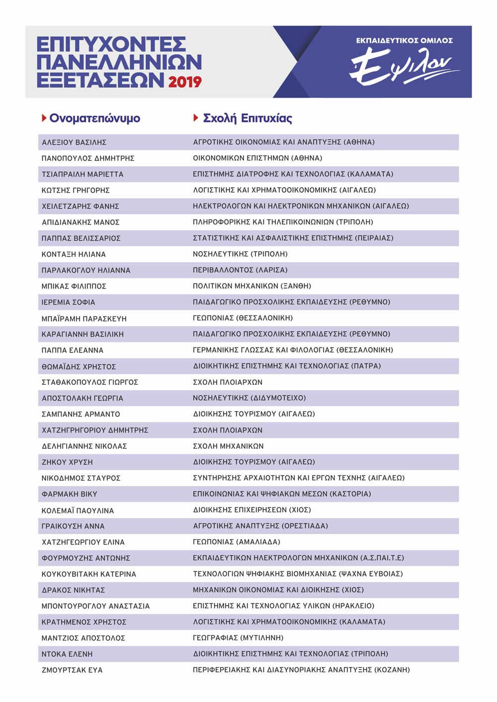 ΠΙΝΑΚΑΣ ΕΠΙΤΥΧΟΝΤΩΝ ΑΝΑ ΕΤΟΣ